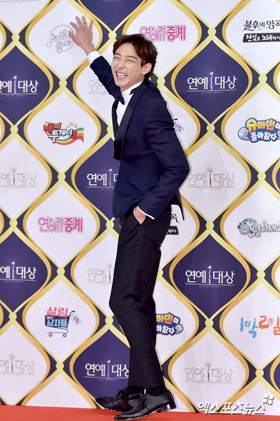 [엑스포츠뉴스 서예진 기자] 24일 오후 서울 여의도동 KBS 신관 공개홀에서 열린 ‘2016 KBS 연예대상’에 참석한 현우가 포토타임을 갖고 있다.