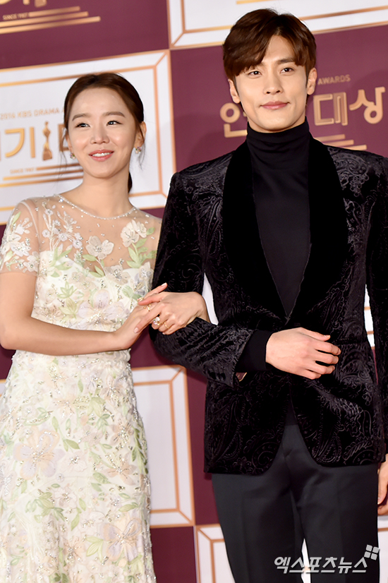 [엑스포츠뉴스 서예진 기자] 31일 오후 서울 여의도동 KBS홀에서 열린 ‘2016 KBS 연기대상’ 시상식에 참석한 배우 신혜선, 성훈이 포토타임을 갖고 있다.