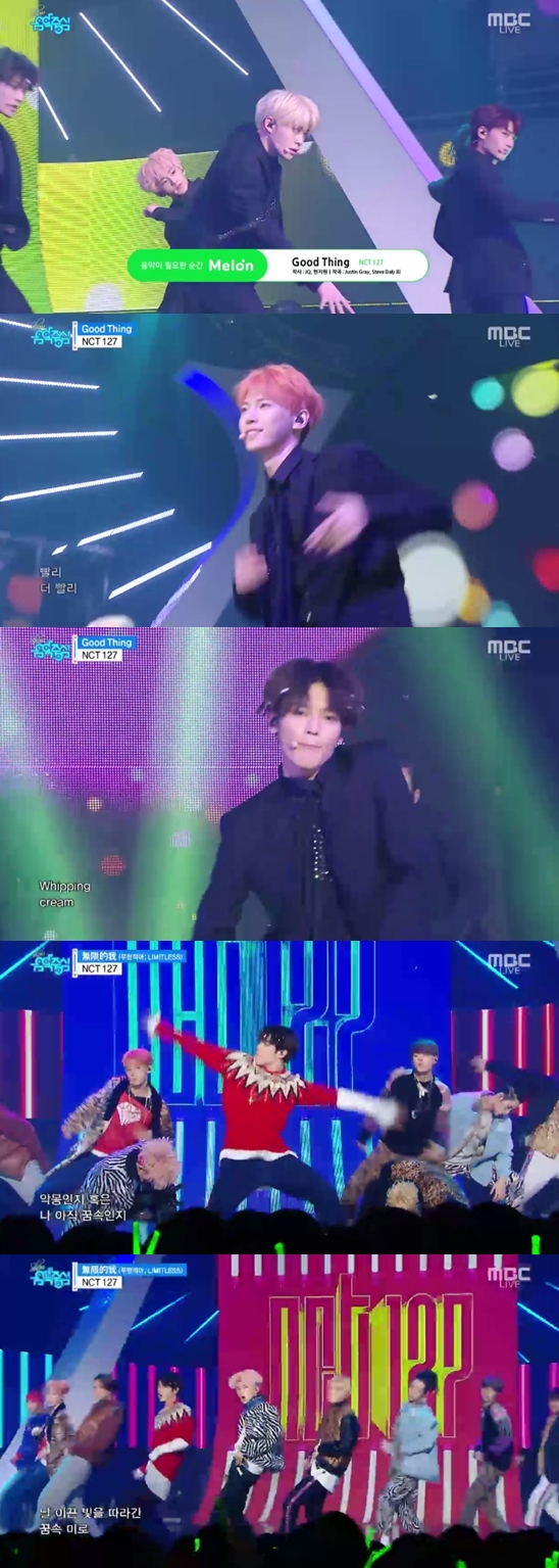 이날 NCT 127은 'Good Thing', '무한적아'의 무대를 선보였다. NCT 127 멤버들은 'Good Thing' 무대에서는 블랙 수트를 입고 카리스마 넘치는 모습을 보였으며 '무한적아' 무대에서는 자유로운 느낌의 의상으로 개성 넘치는 매력을 자랑했다.
