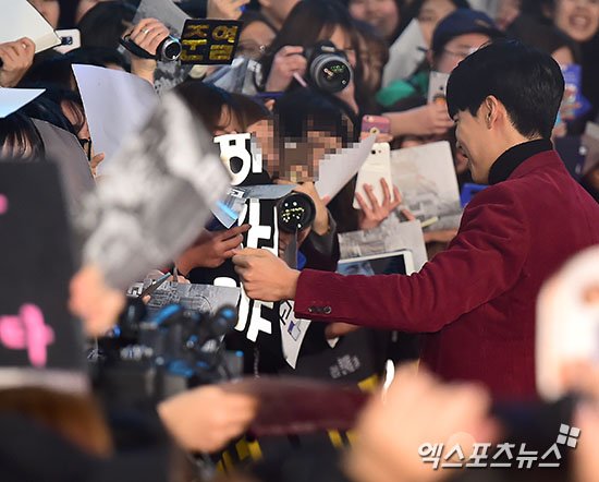 [엑스포츠뉴스 김한준 기자] 16일 오후 서울 영등포동 타임스퀘어 원형광장에서 열린 영화 '더 킹' 레드카펫 및 VIP 시사회에 참석한 류준열이 팬들에게 사인을 하고 있다.