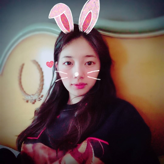가수 겸 배우 수지는 1일 자신의 인스타그램에 셀카에 토끼 스티커를 붙인 사진을 공개했다.