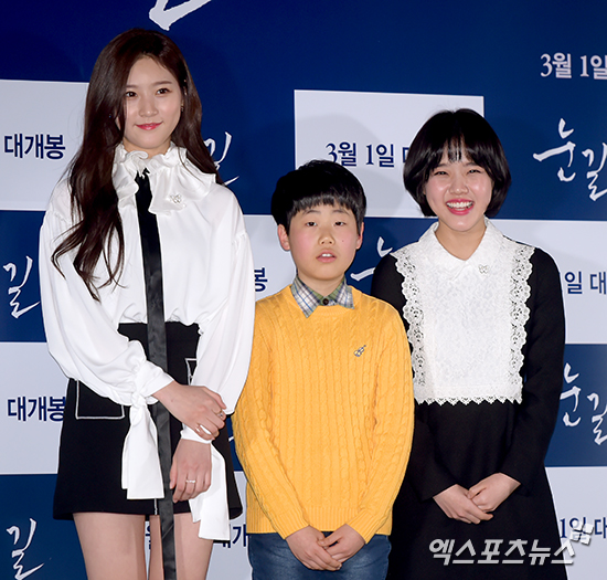 [엑스포츠뉴스 서예진 기자] 13일 오후 서울 행당동 CGV 왕십리에서 진행된 영화 ‘눈길’ 언론 시사회에 참석한 배우 김새론, 장대웅, 김향기가 포토타임을 갖고 있다.