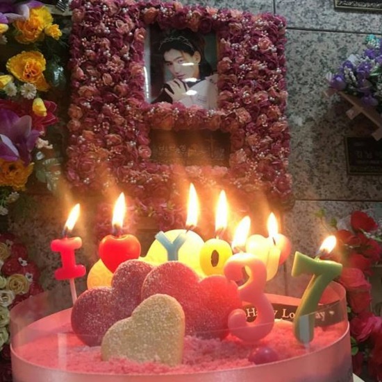 함께 공개된 사진에는 김환성의 37번째 생일을 축하하는 케이크가 담겨져 있다. 팬들이 故 김환성의 생일을 맞아 용미리 제2추모관을 찾아 축하한 것.