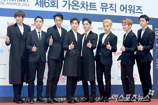[엑스포츠뉴스 서예진 기자] 22일 오후 서울 송파구 잠실실내체육관에서 열린 ‘제6회 가온차트 뮤직 어워즈’에 참석한 그룹 엑소가 본 시상식에 앞서 포토타임을 갖고 있다.