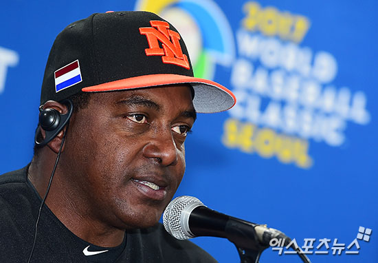[엑스포츠뉴스 김한준 기자] 1일 오후 서울 구로구 고척스카이돔에서 열린 '2017 월드베이스볼클래식(WBC) A조 4개국 감독 공식 기자회견에 참석한 네덜란드 뮬렌 감독이 취재진 질문에 답하고 있다.