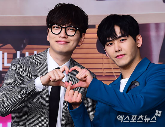 [엑스포츠뉴스 김한준 기자] 13일 오후 서울 마포구 MBC 상암신사옥에서 열린 'MBC 새 수목드라마 '자체발광 오피스' 제작발표회에 참석한 이동휘와 이호원이 포토타임을 갖고 있다.