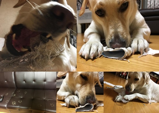 민아는 13일 오후 자신의 인스타그램에 5장의 사진을 게재했다. 공개된 사진 속에는 휴지 및 휴지심, 페트병 등 생활용품을 물어뜯고 있는 반려견의 모습이 담겨 있다.