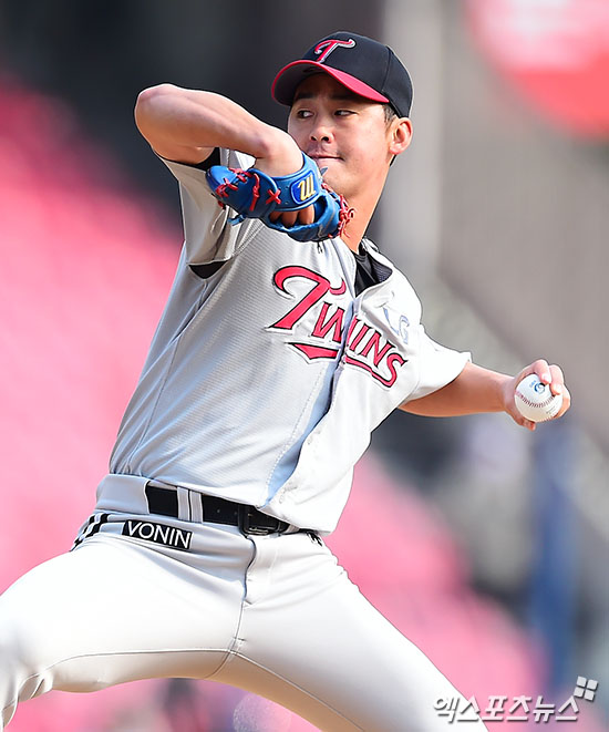 [엑스포츠뉴스 김한준 기자] 25일 오후 서울 송파구 잠실야구장에서 열린 '2017 타이어뱅크 KBO리그' LG 트윈스와 두산 베어스의 시범경기, 7회말 2사 만루 LG 진해수가 공을 힘차게 던지고 있다.