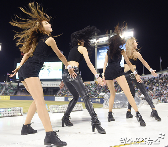 [엑스포츠뉴스 박지영 기자] 31일 오후 서울 송파구 잠실야구장에서 열린 '2017 타이어뱅크 KBO리그' 한화 이글스와 두산 베어스의 경기, 두산 치어리더가 멋진 공연을 펼치고 있다.