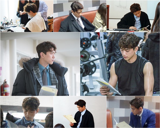 사진 속에는 드라마 촬영현장은 물론이고 포스터, 화보 등 때와 장소를 가리지 않고 수시로 대본을 보며 캐릭터 연구에 열심인 성준의 모습이 담겨있다.