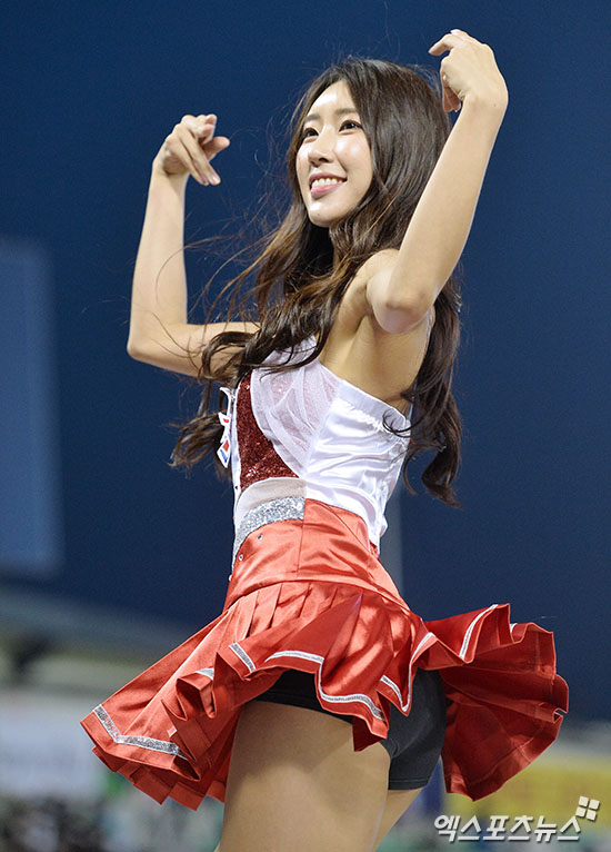 [엑스포츠뉴스 김한준 기자] 11일 오후 서울 송파구 잠실야구장에서 열린 '2017 타이어뱅크 KBO리그' KIA 타이거즈와 두산 베어스의 경기, KIA 치어리더가 멋진 공연을 선보이고 있다.