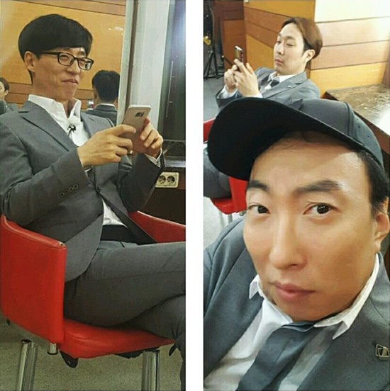 특히 이들은 똑같이 회색 정장을 입고 있는 모습으로 어떤 내용을 담은 '무한도전' 녹화를 진행 중인지 궁금증을 높였다.