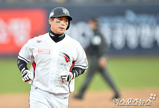 [엑스포츠뉴스 수원, 김한준 기자] 22일 오후 경기도 수원시 장안구 수원kt위즈파크에서 열린 '2017 타이어뱅크 KBO리그' 한화 이글스와 kt 위즈의 경기, 5회말 무사 1루 kt 박경수가 투런 홈런을 날린 후 그라운드를 돌고 있다.