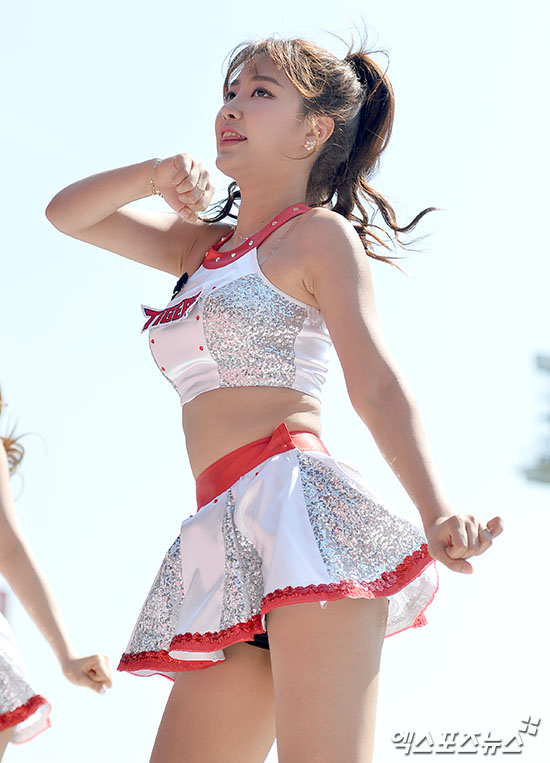 [엑스포츠뉴스 김한준 기자] 23일 오후 서울 송파구 잠실야구장에서 열린 '2017 타이어뱅크 KBO리그' KIA 타이거즈와 LG 트윈스의 경기, KIA 치어리더 김맑음이 멋진 공연을 선보이고 있다.