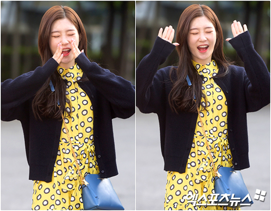 [엑스포츠뉴스 서예진 기자] 28일 오전 서울 여의도동 KBS신관에서 열린 KBS '뮤직뱅크' 리허설에 참석한 다이아 정채연이 출근길에 나서고 있다.