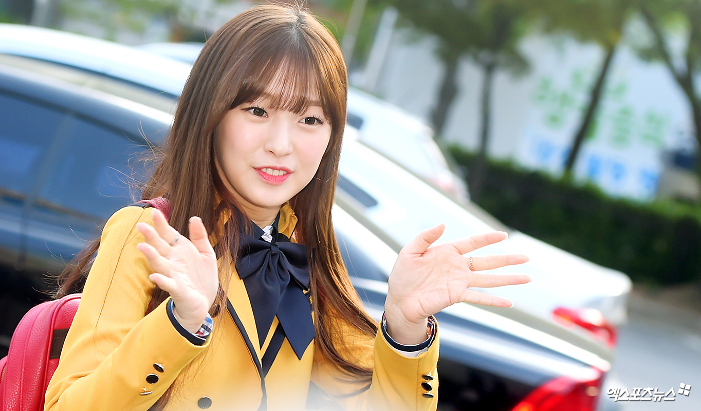 [엑스포츠뉴스 서예진 기자] 28일 오전 서울 여의도동 KBS신관에서 열린 KBS '뮤직뱅크' 리허설에 참석한 오마이걸 아린이 출근길에 나서고 있다.