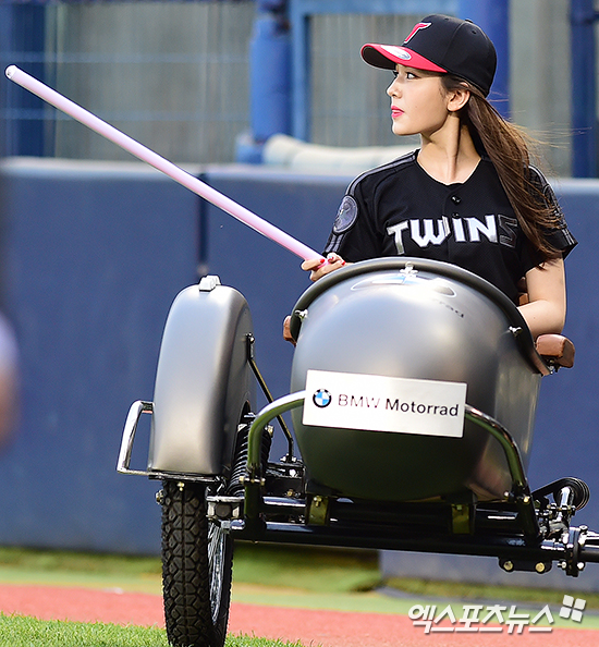 [엑스포츠뉴스 박지영 기자] 4일 오후 서울 송파구 잠실야구장에서 열린 '2017 타이어뱅크 KBO리그' NC 다이노스와 LG 트윈스의 경기에 앞서 가수 전소미가 LG 트윈스의 승리를 기원하는 시구를 하기 위해 입장하고 있다.