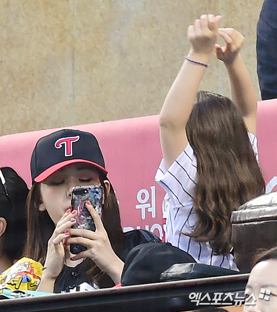 [엑스포츠뉴스 박지영 기자] 4일 오후 서울 송파구 잠실야구장에서 열린 '2017 타이어뱅크 KBO리그' NC 다이노스와 LG 트윈스의 경기, 이날 LG 트윈스의 승리 기원 시구를 한 가수 전소미가 가족들과 함께 관중석에서 경기를 관람하며 즐거운 시간을 보내고 있다.