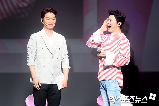 [엑스포츠뉴스 서예진 기자] 7일 오후 서울 한남동 블루스퀘어에서 열린 조정석의 팬미팅 ’더 룸(THE ROOM)’에 참석한 배우 정상훈, 조정석이 팬들과의 시간을 갖고 있다.