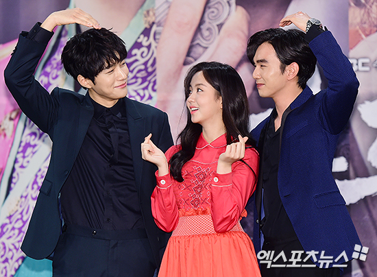 [엑스포츠뉴스 박지영 기자] 8일 오후 서울 상암동 MBC신사옥에서 열린 MBC 새 수목드라마 '군주: 가면의 주인' 제작발표회에 참석한 배우 김명수(인피니트 엘), 김소현, 유승호가 포토타임을 갖고 있다.