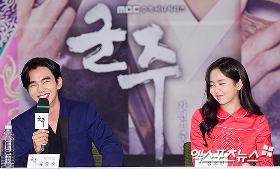 [엑스포츠뉴스 박지영 기자] 8일 오후 서울 상암동 MBC신사옥에서 열린 MBC 새 수목드라마 '군주: 가면의 주인' 제작발표회에 참석한 배우 유승호와 김소현이 포토타임을 갖고 있다.