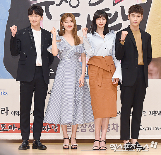 [엑스포츠뉴스 박지영 기자] 10일 오후 서울 목동 SBS사옥에서 열린 SBS 새 수목드라마 '수상한 파트너' 제작발표회에 참석한 배우 지창욱, 남지현, 나라, 최태준이 포토타임을 갖고 있다.