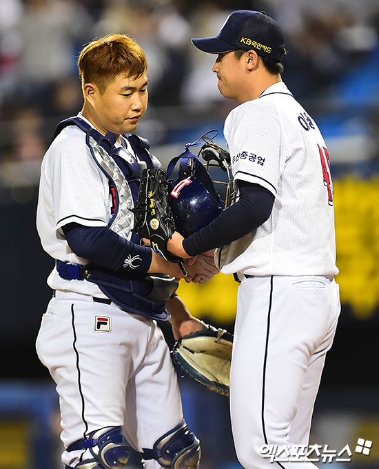 양의지-이용찬 '완벽하게 막았어'[포토]