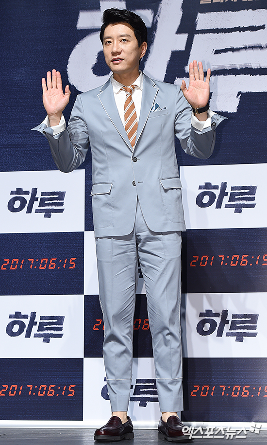 [엑스포츠뉴스 박지영 기자] 12일 오전 서울 CGV 압구정점에서 열린 영화 '하루'(감독 조선호) 제작보고회에 참석한 배우 김명민이 포토타임을 갖고 있다.