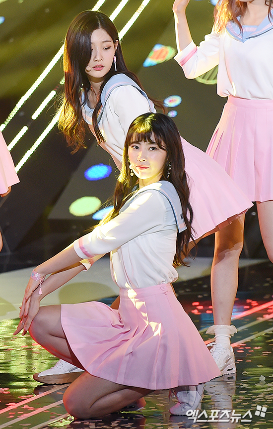[엑스포츠뉴스 박지영 기자] 16일 오후 서울 상암동 SBS프리즘타워에서 열린 SBS MTV '더쇼'에 참석한 다이아 정채연과 기희현이 멋진 무대를 선보이고 있다.