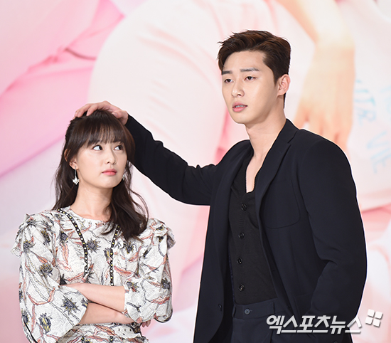 [엑스포츠뉴스 박지영 기자] 18일 오후 서울 영등포구 타임스퀘어 아모리스홀에서 열린 KBS 2TV 새 월화드라마 '쌈, 마이웨이' 제작발표회에 참석한 배우 김지원과 박서준이 포토타임을 갖고 있다.