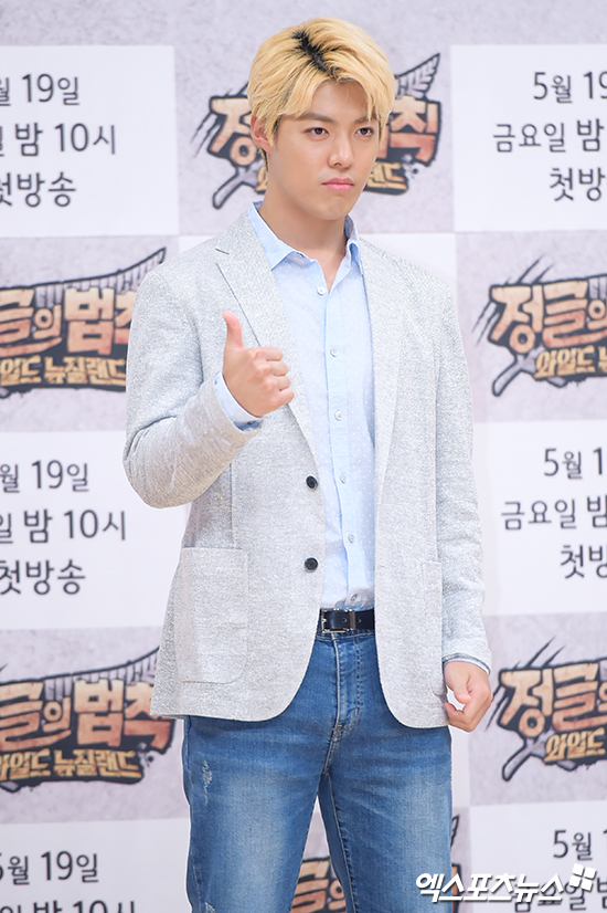 [엑스포츠뉴스 서예진 기자] 18일 오후 서울 목동 SBS에서 진행된 예능프로그램 ‘정글의 법칙 와일드 뉴질랜드’ 제작발표회에 참석한 강남이 포토타임을 갖고 있다.