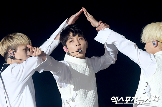 [엑스포츠뉴스 서예진 기자] 23일 오후 서울 방이동 올림픽공원 올림픽홀에서 열린 그룹 세븐틴의 네 번째 미니앨범 ’A/1’ 발매 쇼케이스에 참석한 세븐틴이 멋진 공연을 선보이고 있다.