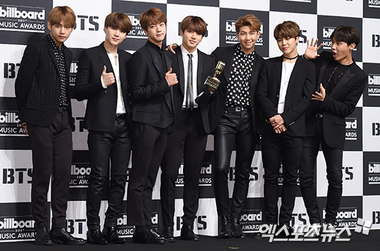 [엑스포츠뉴스 박지영 기자] 29일 오전 서울 소공동 롯데호텔서울점에서 열린 2017 빌보드 뮤직어워드 톱 소셜 아티스트 부문 수상 기념 기자간담회에 참석한 방탄소년단 포토타임을 갖고 있다.