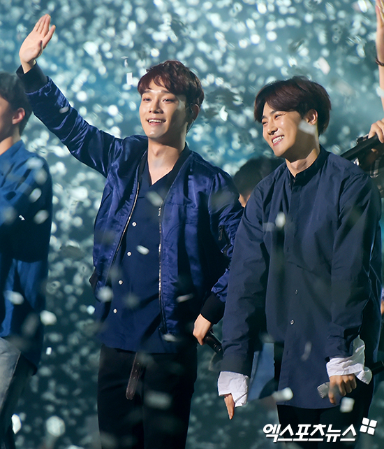 [엑스포츠뉴스=고양, 서예진 기자] 31일 오후경기도 고양시 대화동 킨텍스 제2전시장에서 열린 지상파 UHD 개국 공동 축하쇼 ‘유 해브 어 드림’ 에 참석한 엑소 첸, 수호가 멋진 공연을 선보이고 있다.