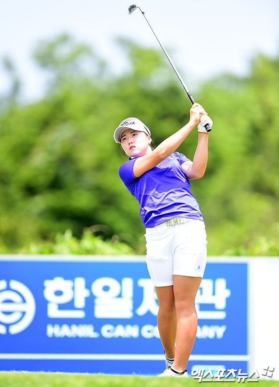 [엑스포츠뉴스 제주, 김한준 기자] 3일 제주특별자치도 서귀포시 롯데스카이힐 제주컨트리클럽(파72. 6,289야드)에서 열린 '제7회 롯데 칸타타 여자오픈(총상금 6억 원, 우승상금 1억2천만 원)' 2라운드 경기, 조아연이 5번홀 티샷을 날리고 있다.