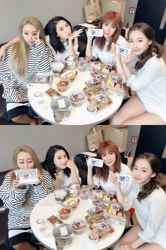 씨스타는 3일 공식 트위터를 통해 "팬 분들의 준비해주신 맛있는 점심 먹고 힘이 불"이라며 "오늘 무대도 본.방.사.수! #씨스타 #LONELY"이라는 말과 함께 사진을 게시했다.