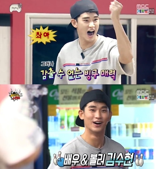 김수현은 지난 10일 방송된 MBC 예능프로그램 '무한도전'에 출연해 멤버들과 볼링대결을 펼쳤다.