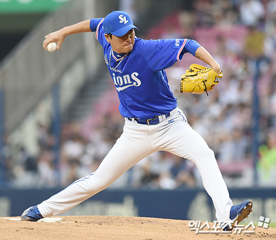 [엑스포츠뉴스 박지영 기자] 20일 오후 서울 송파구 잠실야구장에서 열린 '2017 타이어뱅크 KBO리그' 삼성 라이온즈와 LG 트윈스의 경기, 1회말 삼성 선발투수 우규민이 역투하고 있다.