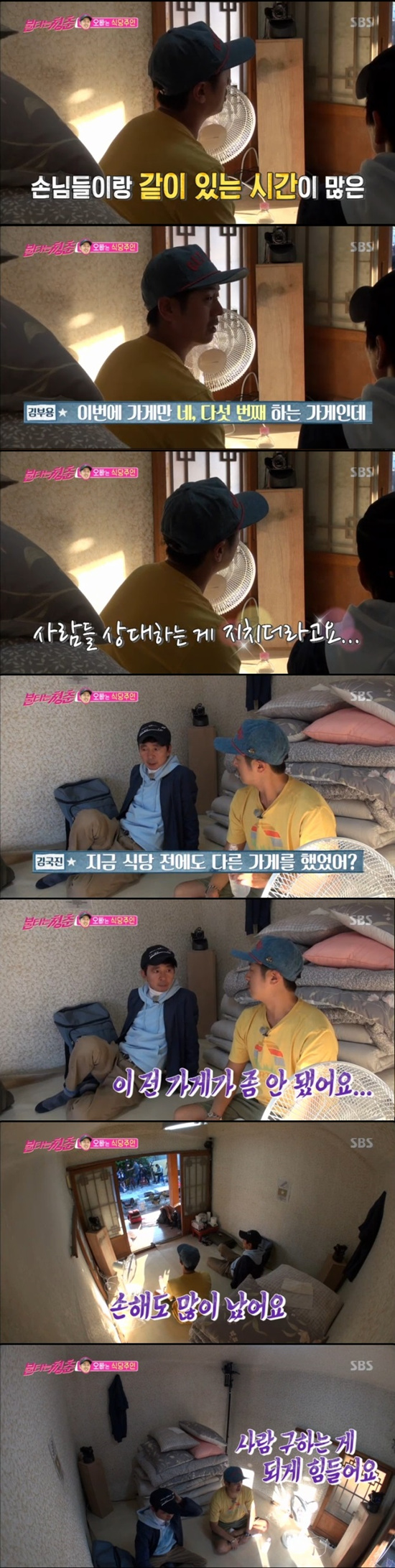 김국진은 김부용이 지금 식당 전에도 다른 가게를 했었다는 사실에 놀랐다. 김부용은 "이 전 가게가 잘 안 됐다. 손해도 많이 났다"며 "사람 구하는 게 되게 힘들다"고 고충을 토로했다.