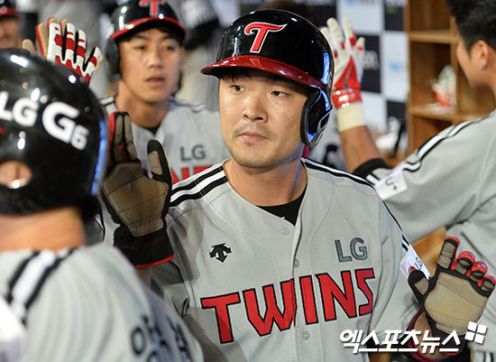 [엑스포츠뉴스 김한준 기자] 24일 오후 서울 구로구 고척스카이돔에서 열린 '2017 타이어뱅크 KBO리그' LG 트윈스와 넥센 히어로즈의 경기, 6회초 2사 만루 LG 이형종이 양석환의 만루 홈런때 득점에 성공한 후 더그아웃에서 하이파이브를 하고 있다.
