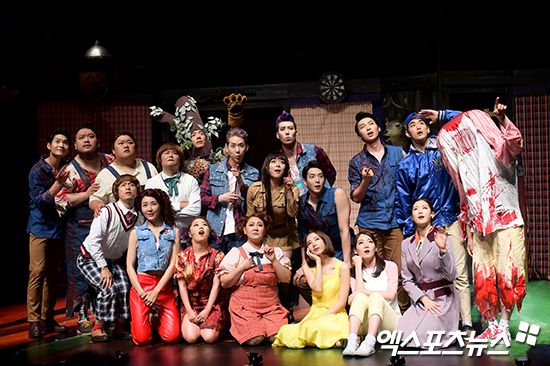 [엑스포츠뉴스 서예진 기자] 28일 오후 서울 동숭동 유니플렉스에서 진행된 뮤지컬 ‘이블데드’ 프레스콜에 참석한 주역들이 포토타임을 갖고 있다.