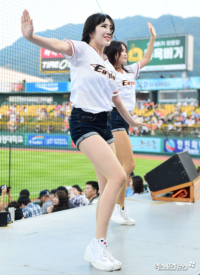 [엑스포츠뉴스 대전, 김한준 기자] 13일 오후 대전광역시 중구 한화생명 이글스파크에서 열린 '2017 타이어뱅크 KBO리그' 롯데 자이언츠와 한화 이글스의 경기, 한화 치어리더 조아련이 멋진 공연을 선보이고 있다.