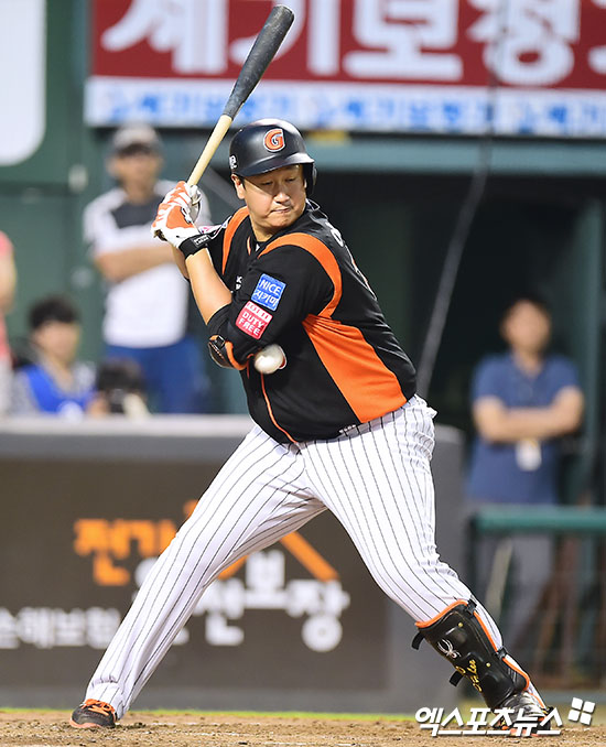 [엑스포츠뉴스 대전, 김한준 기자] 13일 오후 대전광역시 중구 한화생명 이글스파크에서 열린 '2017 타이어뱅크 KBO리그' 롯데 자이언츠와 한화 이글스의 경기, 5회초 2사 1,3루 롯데 이대호가 사구에 맞고 있다.