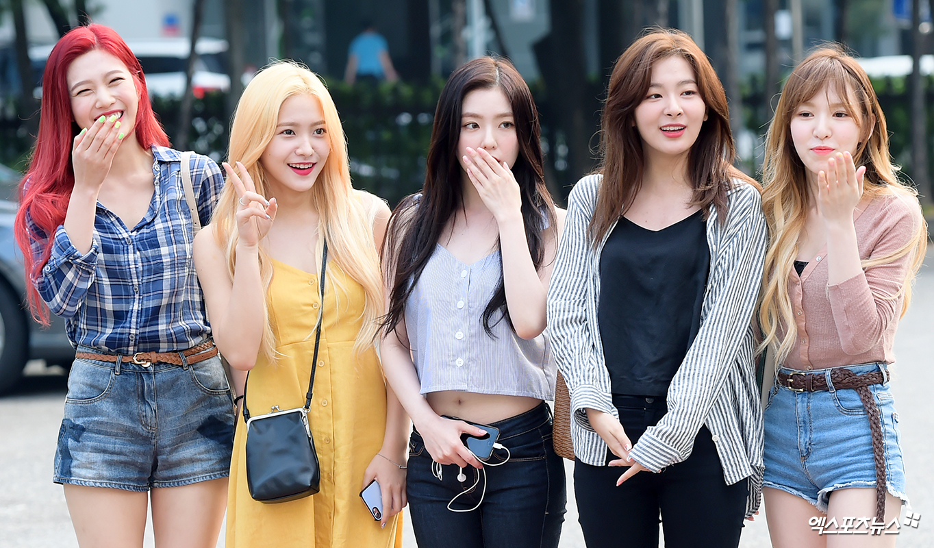 [엑스포츠뉴스 서예진 기자] 14일 오전 서울 여의도동 KBS신관에서 열린 KBS '뮤직뱅크' 리허설에 참석한 그룹 레드벨벳이 출근길에 나서고 있다.