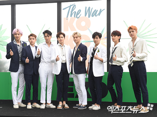 19일 오전 8시 기준으로 엑소의 새 앨범 'THE WAR' 타이틀곡 'Ko Ko Bop'은 멜론, 지니, 네이버뮤직, 벅스, 소리바다 등 총 5개 주요 음원사이트 실시간 차트 1위를 달리고 있다.