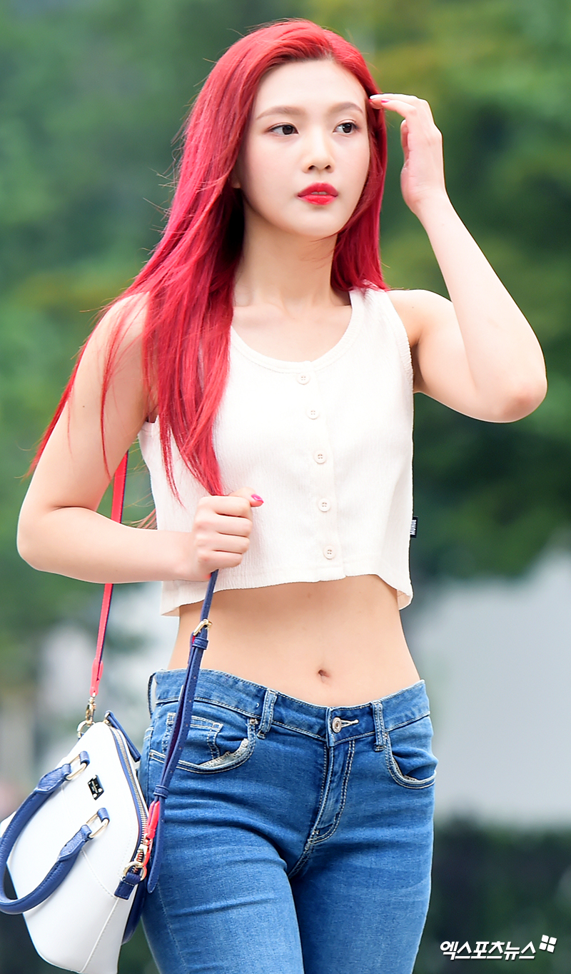 [엑스포츠뉴스 서예진 기자] 21일 오전 서울 여의도동 KBS신관에서 열린 KBS '뮤직뱅크' 리허설에 참석한 레드벨벳 조이가 출근길에 나서고 있다.