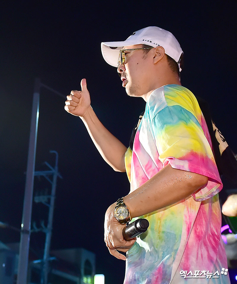 [엑스포츠뉴스 부산, 김한준 기자] 22일 오후 부산 해운대 구남로에서 열린 'CITY BLOCK; 해운대 함께 NORA!'에 참석한 하하가 멋진 공연을 선보이고 있다.