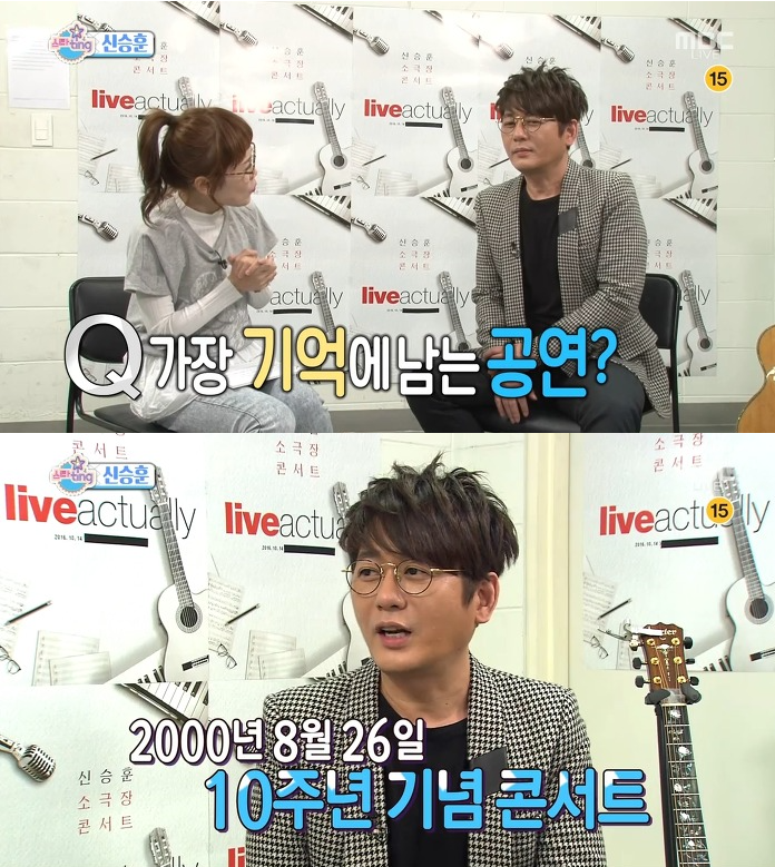 리포터가 그동안 1800회 이상 공연을 했던 신승훈에게 가장 기억에 남는 공연을 묻자 신승훈은 "2000년 8월 26일 10주년 기념 콘서트가 가장 기억에 남는다라고 밝혔다.