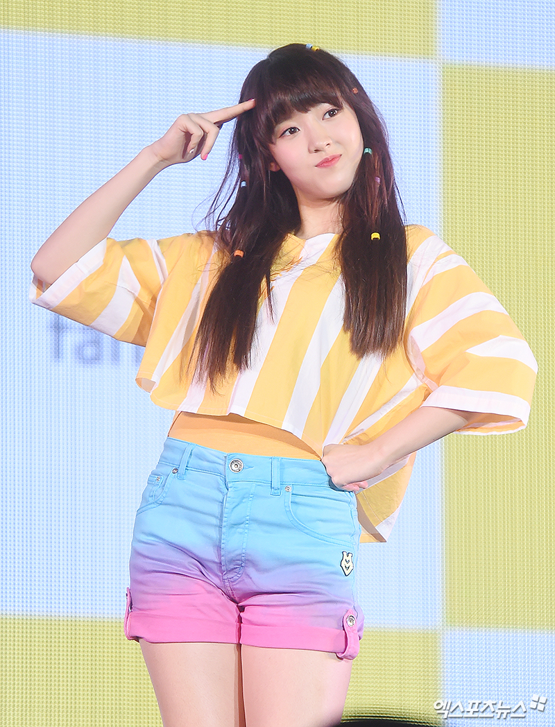 [엑스포츠뉴스 박지영 기자] 8일 오후 서울 중구 장충체육관에서 걸그룹 '위키미키(Weki Meki)' 첫 번째 미니앨범 '위미(WEME)' 발매 기념 쇼케이스가 열렸다. 이날 쇼케이스에 참석한 위키미키 세이가 포토타임을 갖고 있다.