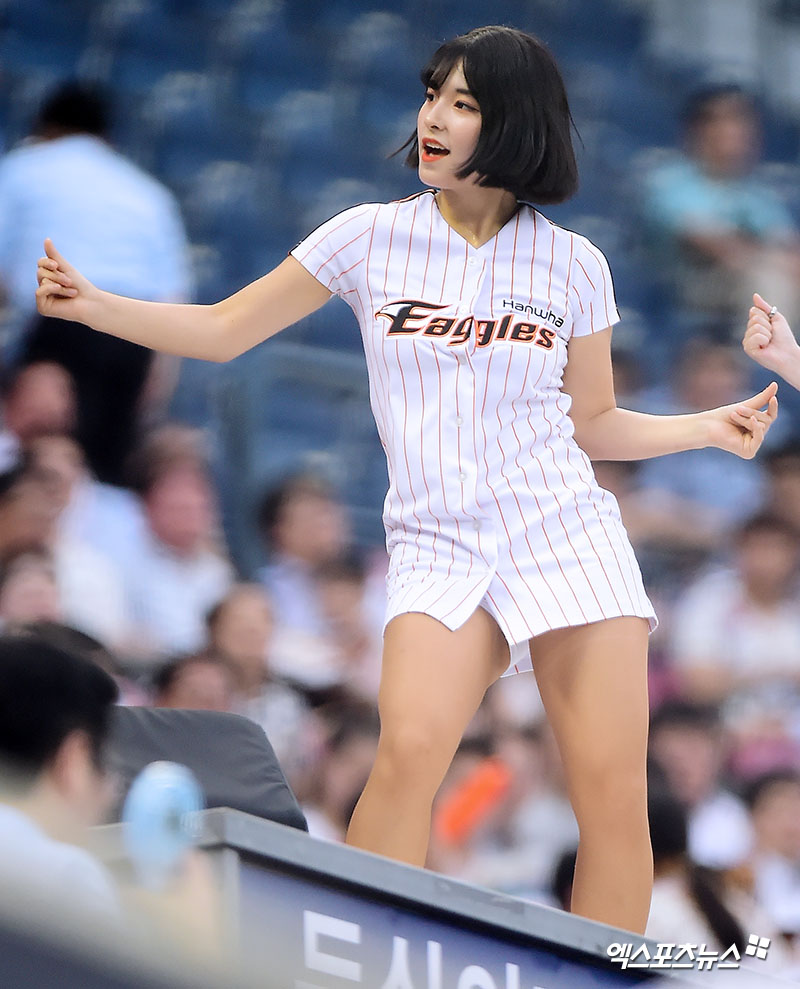 [엑스포츠뉴스 김한준 기자] 9일 오후 서울 송파구 잠실야구장에서 열린 '2017 타이어뱅크 KBO리그' 한화 이글스와 두산 베어스의 경기, 한화 치어리더 이하은이 멋진 공연을 선보이고 있다.